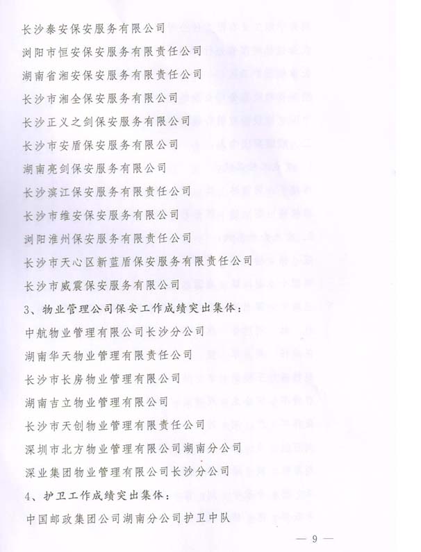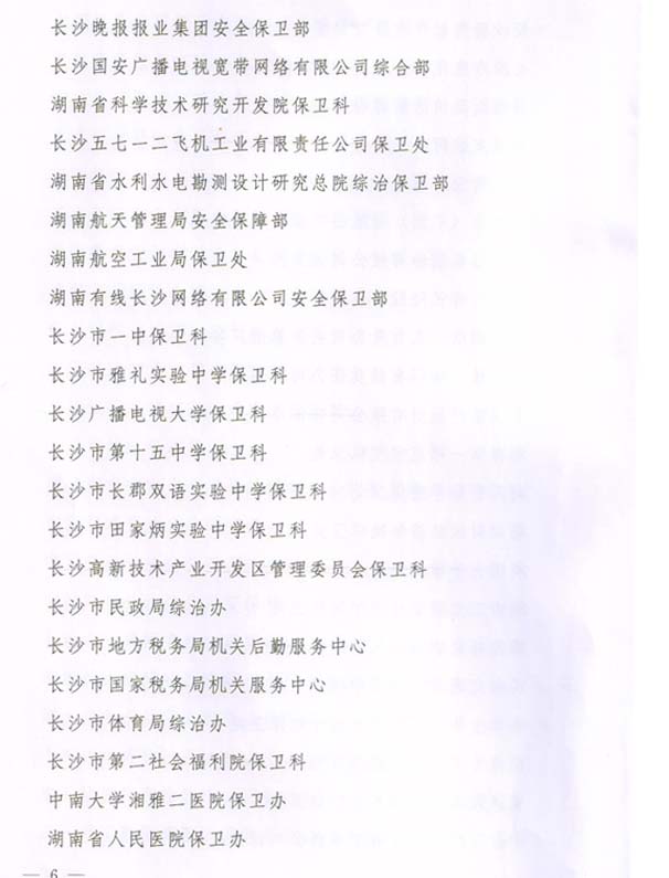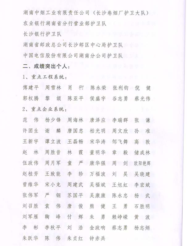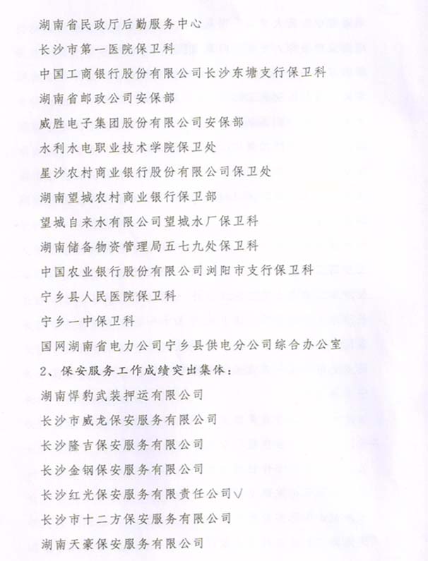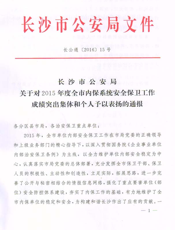 2015年度榮獲長沙市公安局安全保衛(wèi)工作成績突出集體榮譽獎勵