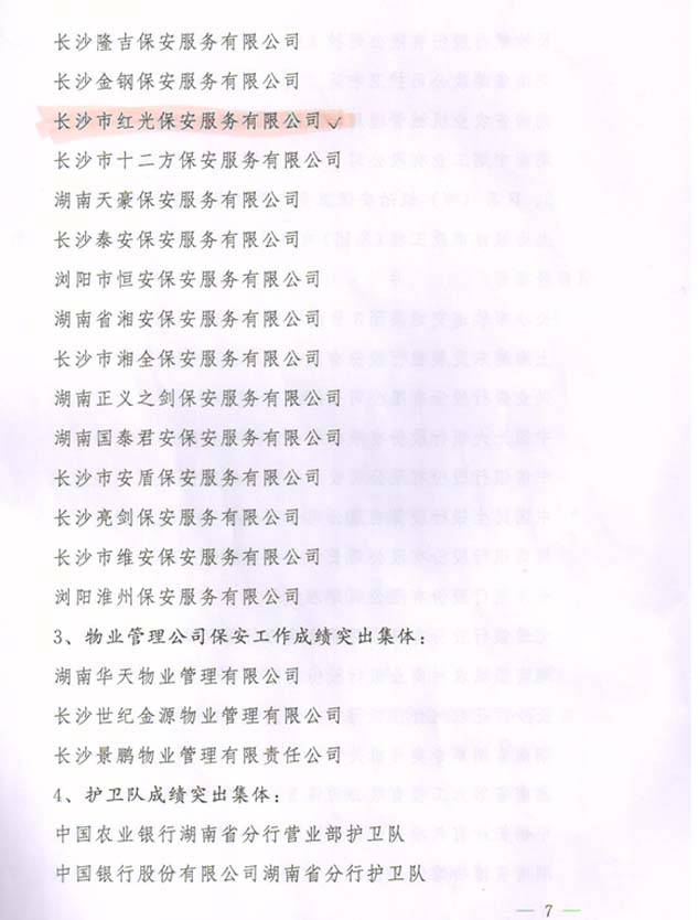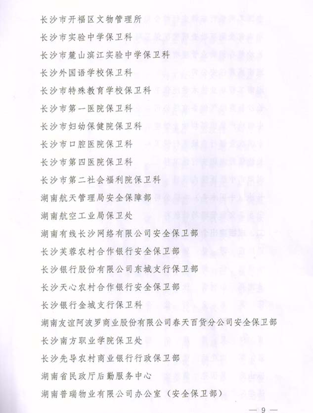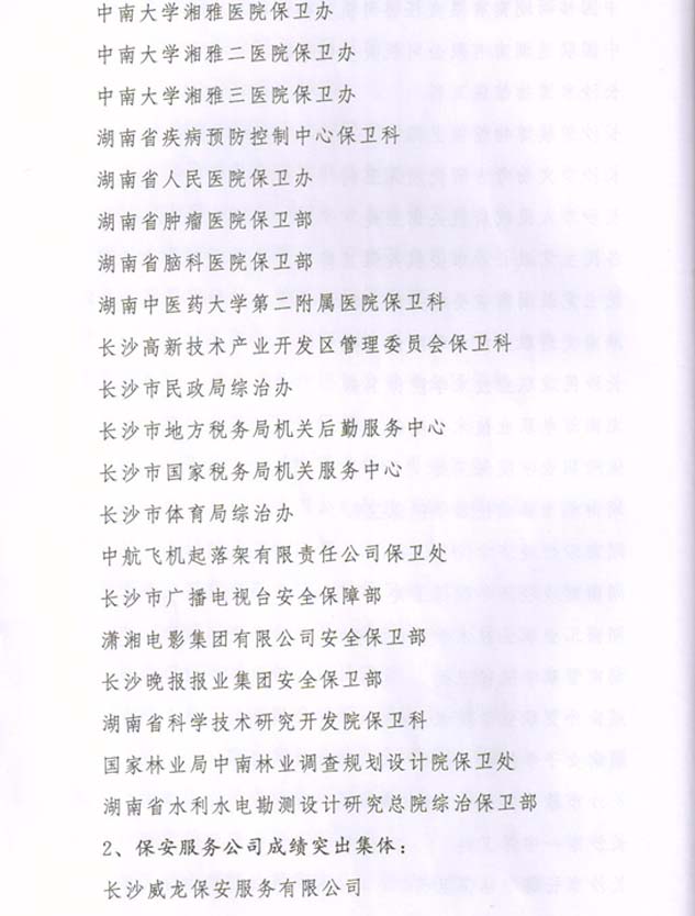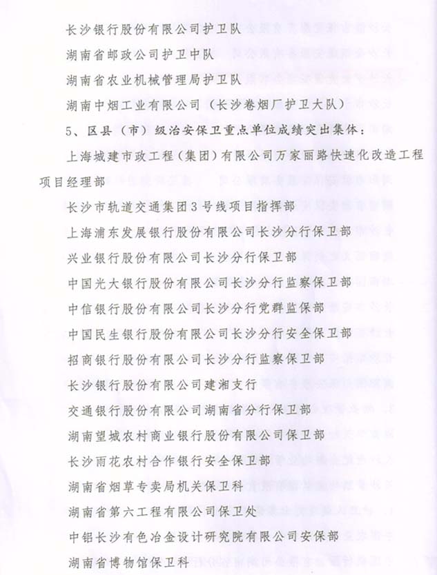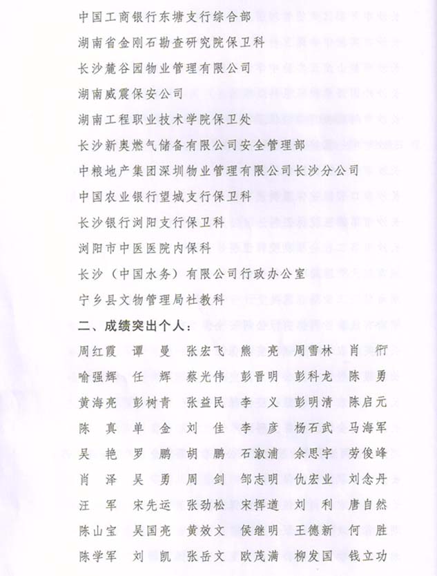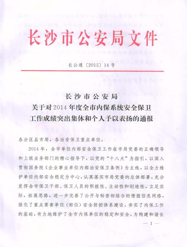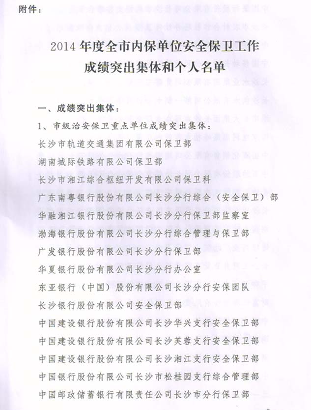 2014年度榮獲長沙市公安局安全保衛(wèi)工作成績突出集體榮譽(yù)獎勵